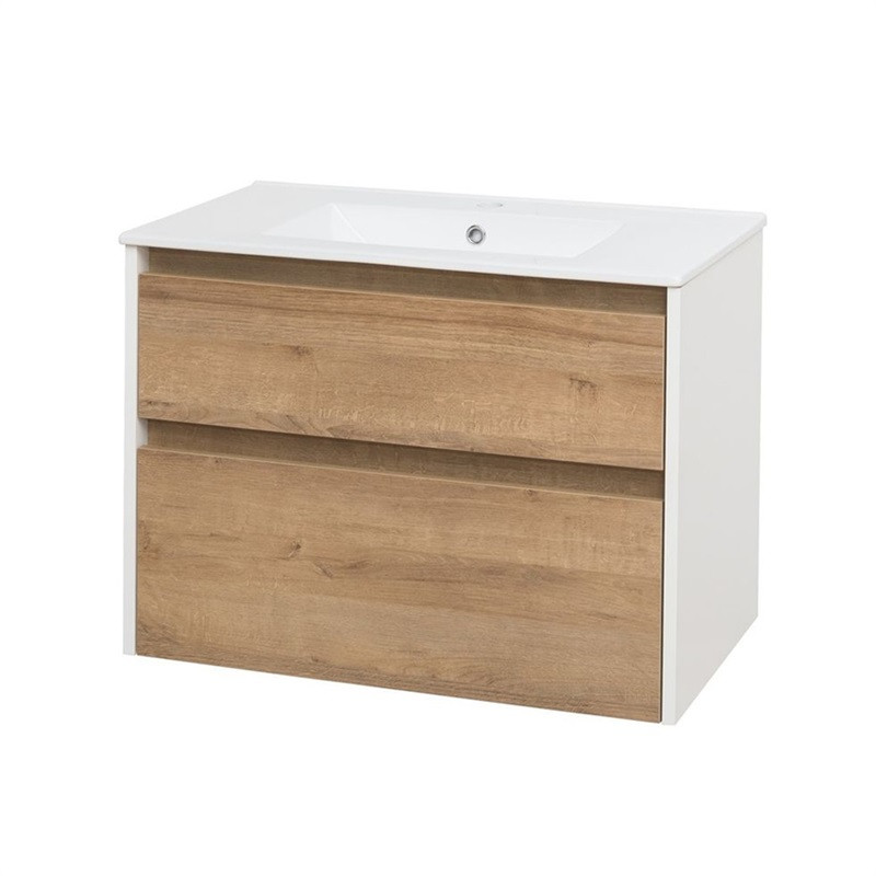Opto, kúpeľňová skrinka s keramickým umývadlom,, biela/dub, 2 zásuvky, 810x580x458 mm