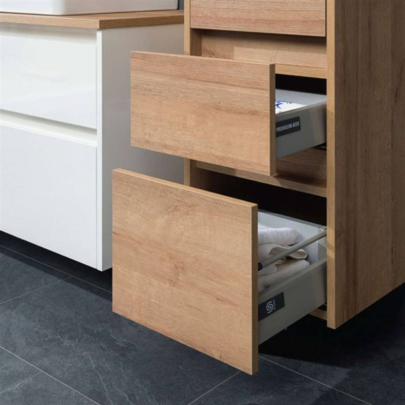 Opto, kúpeľňová skrinka, vysoká, 401x1247x360 mm, závesná, dvierka a 2 zásuvky, pravé otváranie, Multidecor, Arktická sivá