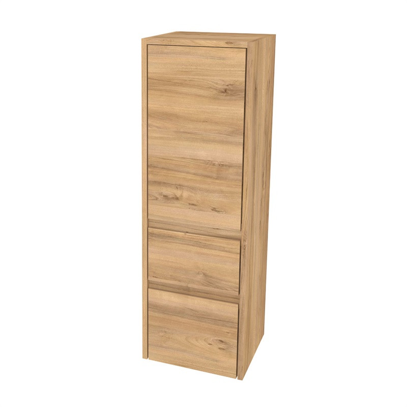 Opto, kúpeľňová skrinka, vysoká, 401x1247x360 mm, závesná, dvierka a 2 zásuvky, pravé otváranie, Multidecor, Orech Pacifik prírodný