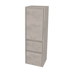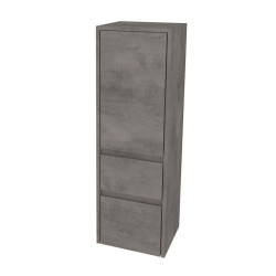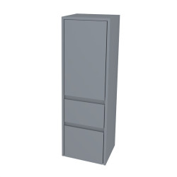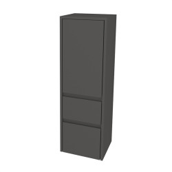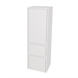 Jednoduchosť, efektívnosť, elegancia. To sú hlavné spoločné menovateľa kúpeľňového nábytku, ktorý ozdobí každú kúpeľňu. Hrany skriniek sú laserovo opracované. Skrinka obsahuje 2 zásuvky a dvierka za ktorými sa ukrývajú 2 police. Vyberať môžete z 2 typov otvárania (ľavé, pravé) a 3 farebných odtieňov: lesklá biela, dub Riviera a čierna supermat. Skrinka sa dodáva v zloženom stave.