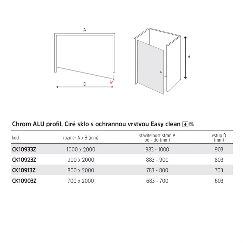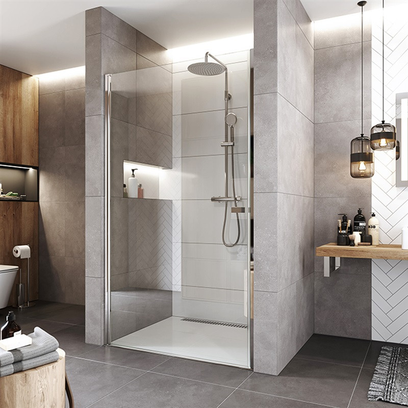 - Pivotové sprchové dvere, Novea, 80x200 cm, chróm ALU, sklo Číre, L/P prevedenie