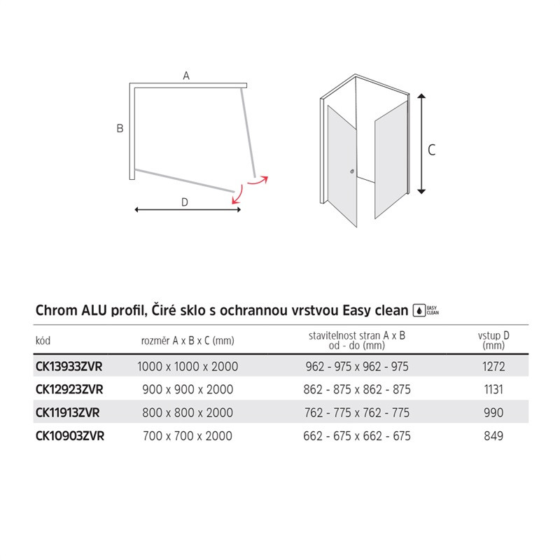 - Pivotový sprchový kút Novea, štvorec, 100x100 cm, chróm ALU, sklo Číre
