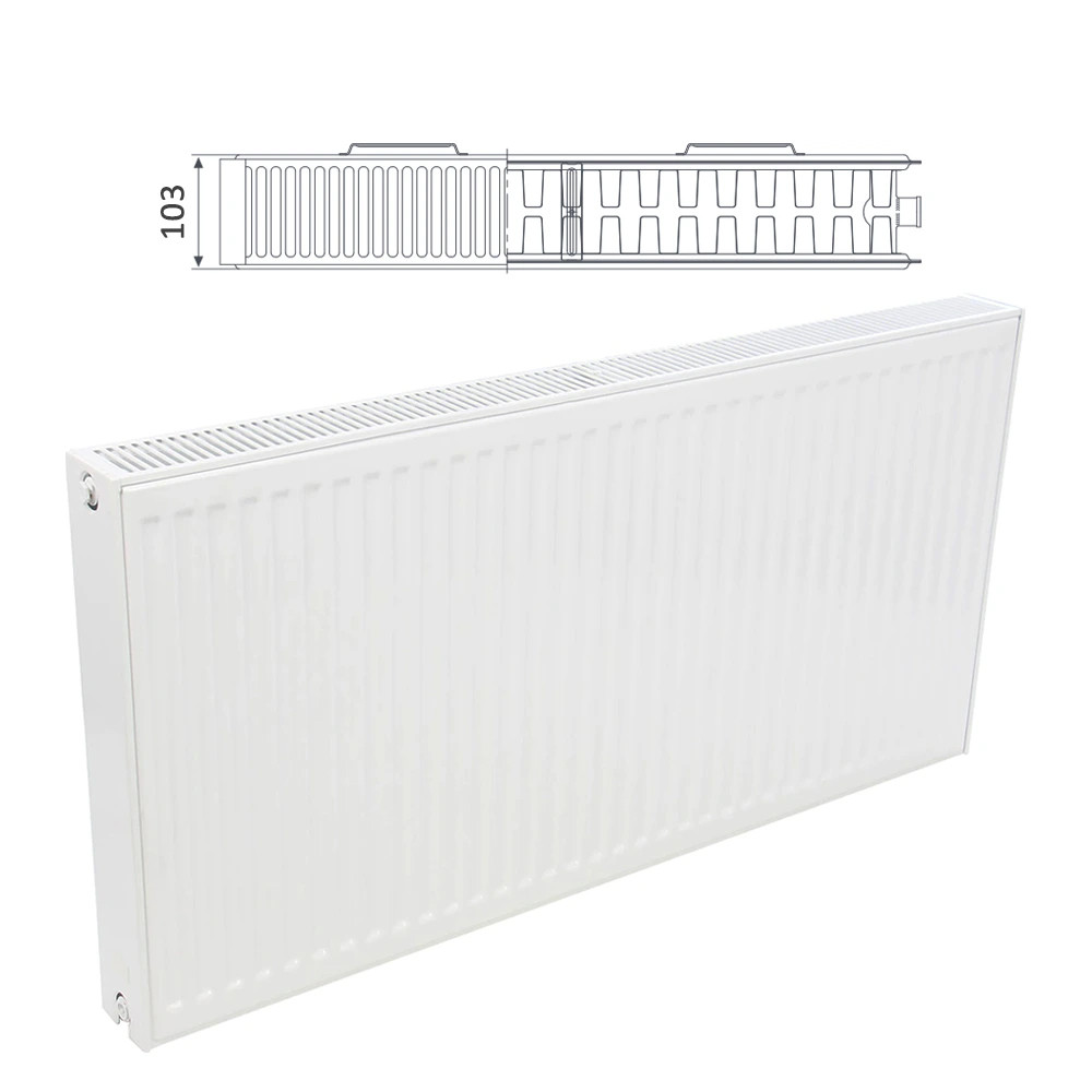 Výkonný dvojpanelový radiátor s dvoma konvekčnými lamelami a bočným pripojením. Vďaka výške 900 mm a šírke 1000 mm poskytuje vysoký tepelný výkon aj pri menšej ploche na stene. Biely povrch zapadne do každého interiéru.