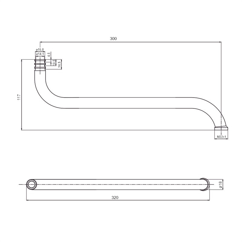 Ramienko rúrkové ? 18 mm o celkovej dĺžke 300 mm. Ramienko je vyrobené z kvalitnej pochrómovanej mosadze. Ramienko je určené pre batérie Sonáta, Lila, Kasia a RetroViktorie.
