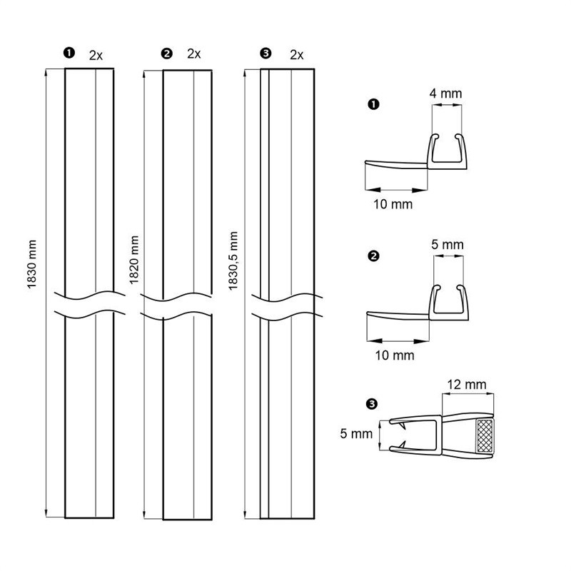 - Sada těsnění pro CK3512..N,H, 4 mm, 2ks: těs. s mag., stír. lišty na pos. dveře a pev. sklo "akční"