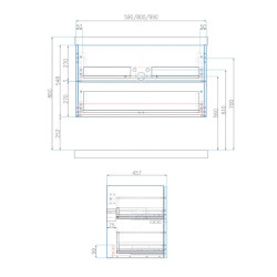 Siena, kúpeľňová skrinka 800x548x457 mm, spodná, 2 zásuvky, push-open systém, biela lesk. Je možné kombinovať s umývadlom, pr. s kúpeľňovou doskou na skrinku.