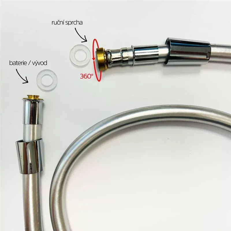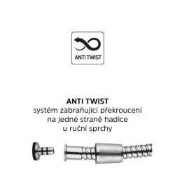 - Sprchová hadica šedostrieborná 120 cm, systém zabraňujúci prekrúteniu