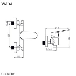 Sprchová nástenná batéria, Viana, bez príslušenstva, 150 mm, chróm