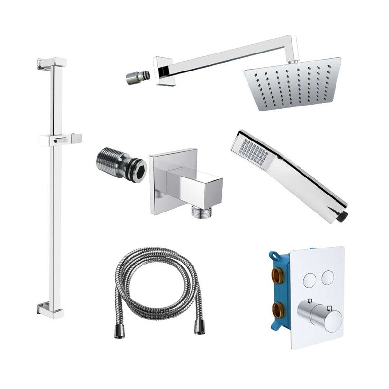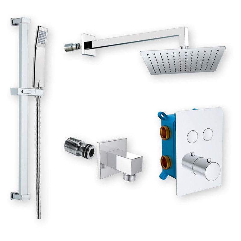 Sprchová sada s termostatickou podomietkovú tlačidlovú batériou - 2-cestná - hranatý kryt