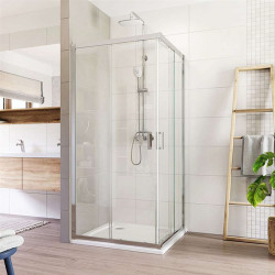 - Sprchovací kút, LIMA, štvorec, 90 cm, chróm ALU, sklo Point, vanička liaty mramor