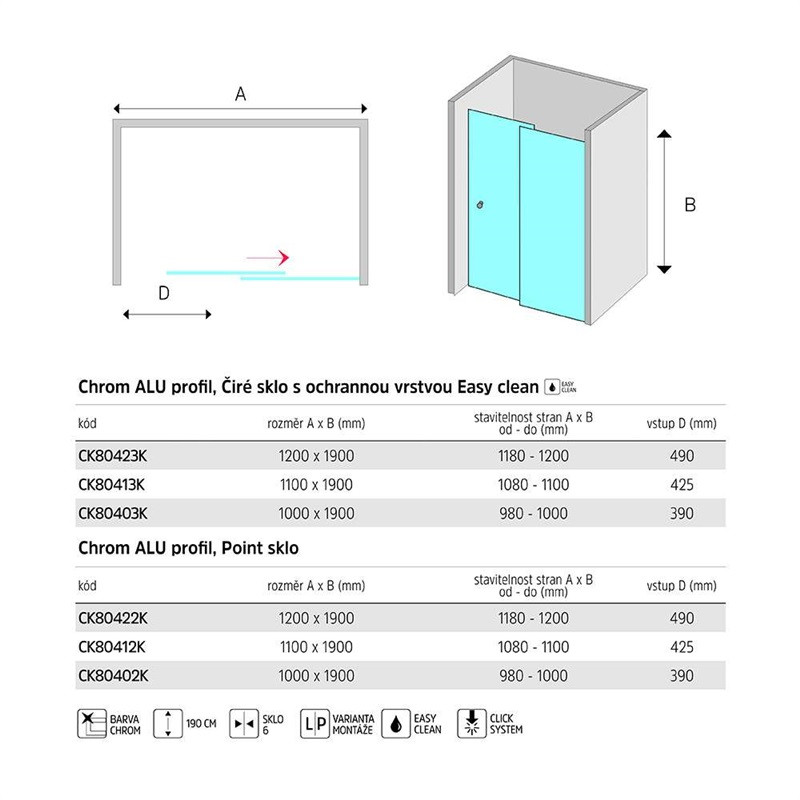 - Sprchové dvere, LIMA, dvojdilene, zasúvacie, 100 cm, chróm ALU, sklo Číre