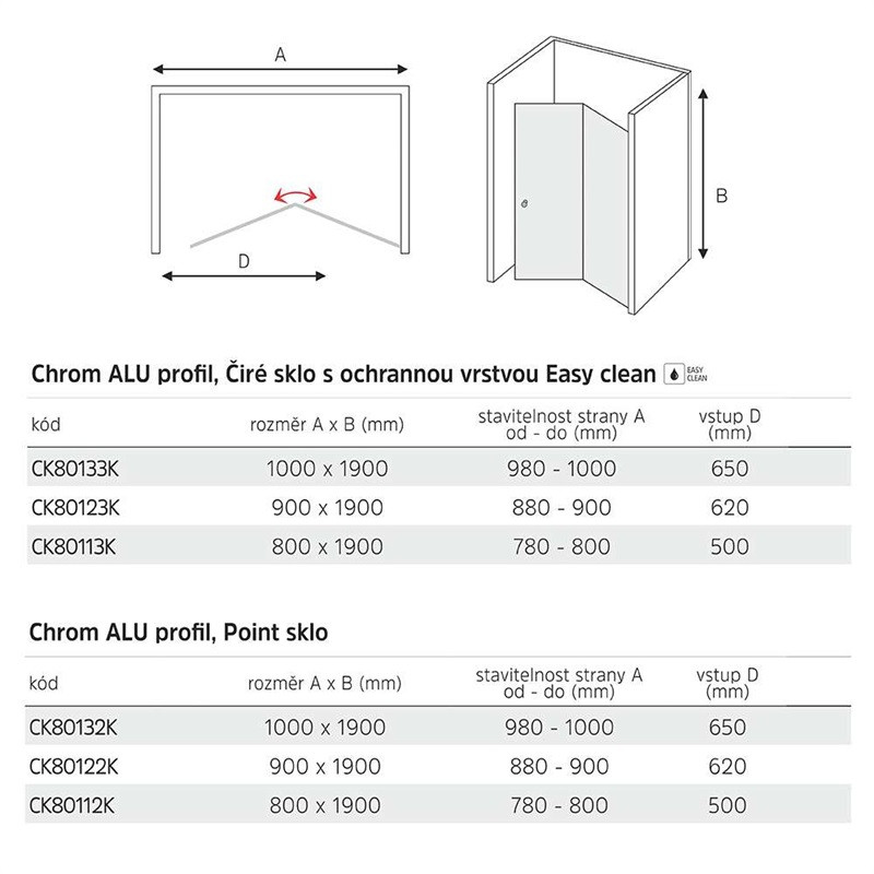 - Sprchové dvere LIMA, zalamovacie, 100x190 cm, chróm ALU, sklo číre 6 mm