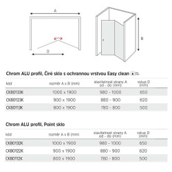 - Sprchové dvere LIMA, zalamovacie, 100x190 cm, chróm ALU, sklo Point 6 mm