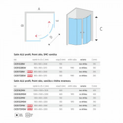 - Sprchový box bez strechy, štvrťkruh, 90 cm, R550, satin, sklo Point, SMC vanička, záda biele