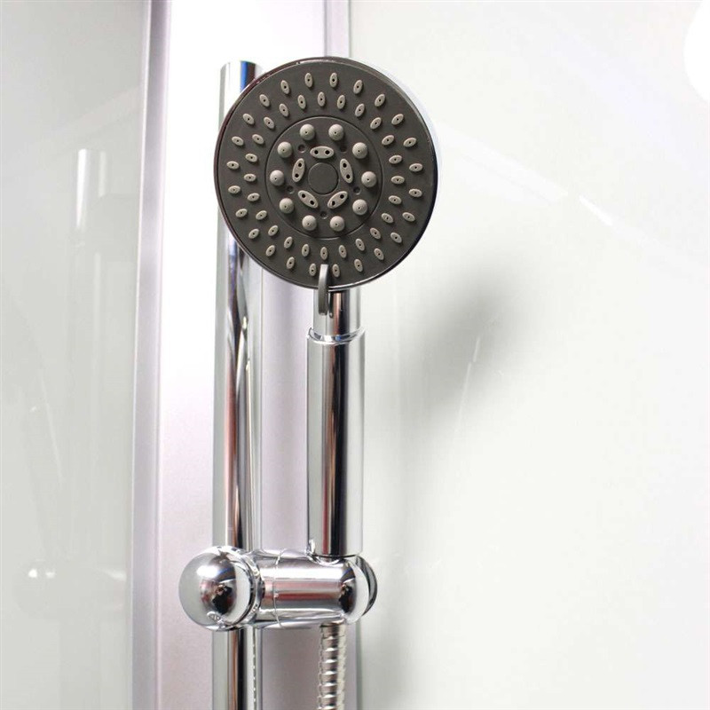 - Sprchový box, štvorcový, 90cm, satin ALU, sklo Point, zadne steny biele, SMC vanička, so strieškou