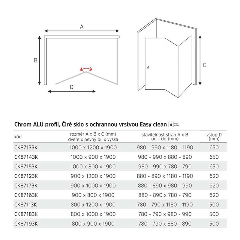 - Sprchový kút, Lima, obdĺžnik, 100x80 cm, chróm ALU, sklo Čiré