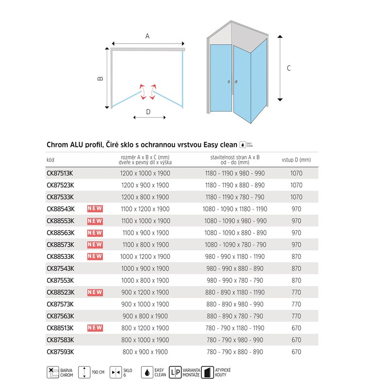 - Sprchový kút, Lima, obdĺžnik, 80x90x190 cm, chróm ALU, sklo Číre