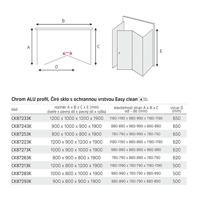 Sprchový kút, LIMA, obdĺžnik, 90x80x90x190 cm, chróm ALU, sklo číre