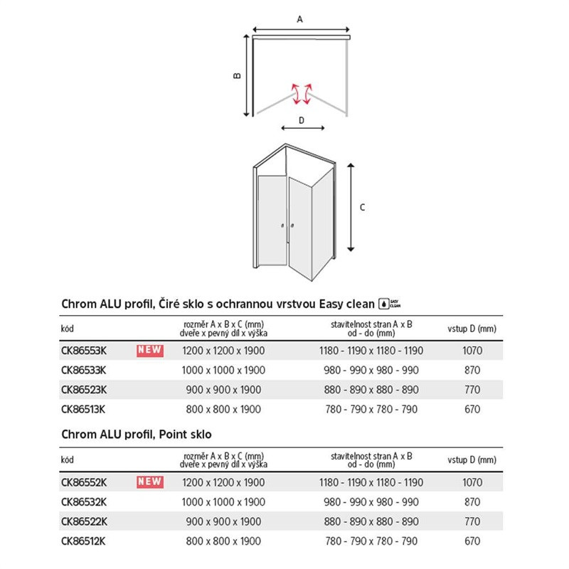 - Sprchový kút, Lima, štvorec, 120 cm, chróm ALU, sklo Čiré, dvere lietacie