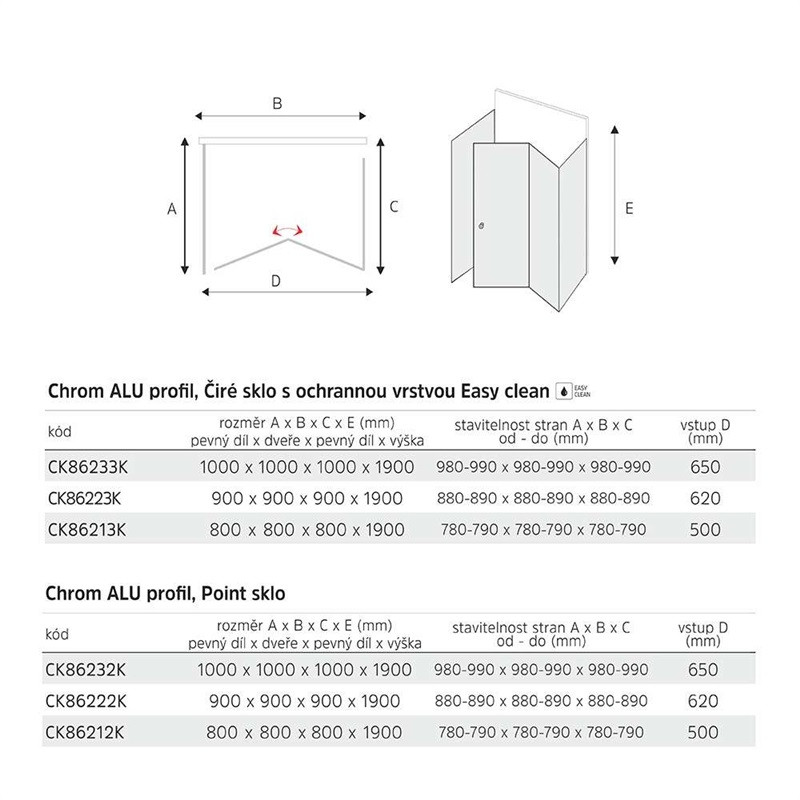 Sprchový kút, LIMA, štvorec, 80x80x80x190 cm, chróm ALU, sklo číre