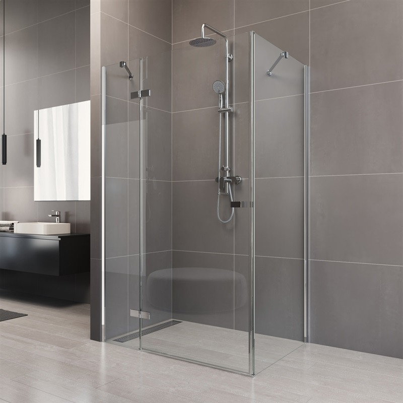 Hliníkové profily vo farbe chróm, sklo Číre, hrúbka skla 6/6 mm, obdĺžnik, rozmer 800x900 mm, výška 2000 mm.