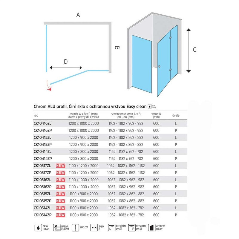 - Sprchový kút, Novea, obdĺžnik, 90x100 cm, chróm ALU, sklo Číre, dvere pravé a pevný diel