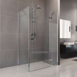 Hliníkové profily vo farbe chróm, sklo Číre, hrúbka skla 6/6 mm, obdĺžnik, rozmer 900x800 mm, výška 2000 mm.