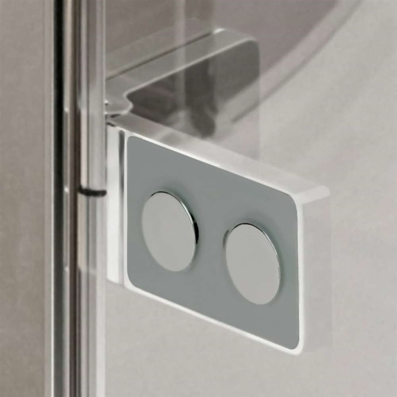 Hliníkové profily vo farbe chróm, sklo Číre, hrúbka skla 6/6 mm, štvorec, rozmer 800x800 mm, výška 2000 mm.