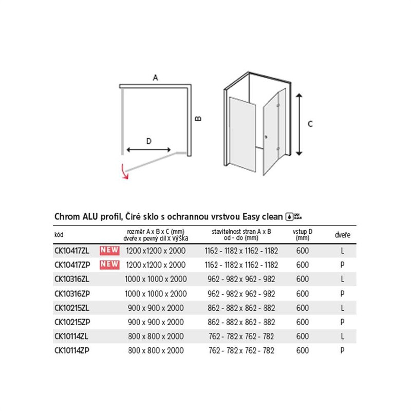 Sprchový kút, Novea, štvorec, 80 cm, chróm ALU, sklo Číre, dvere pravé a pevný diel
