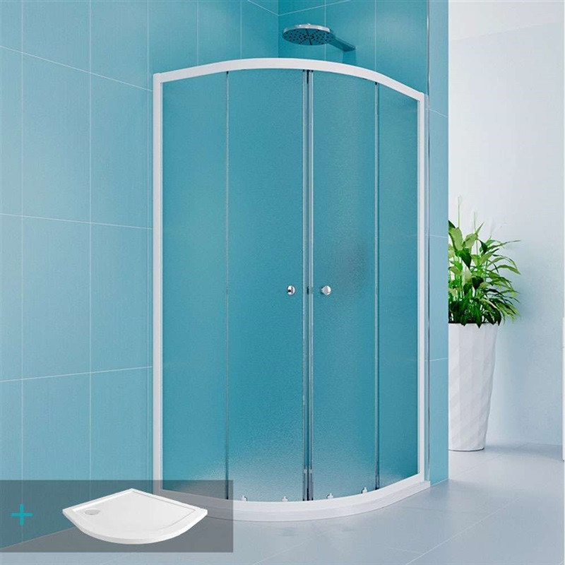 - Sprchový set z Kory Lite, štvrťkruh, 90 cm, biely ALU, sklo Grape a nízké SMC vaničky