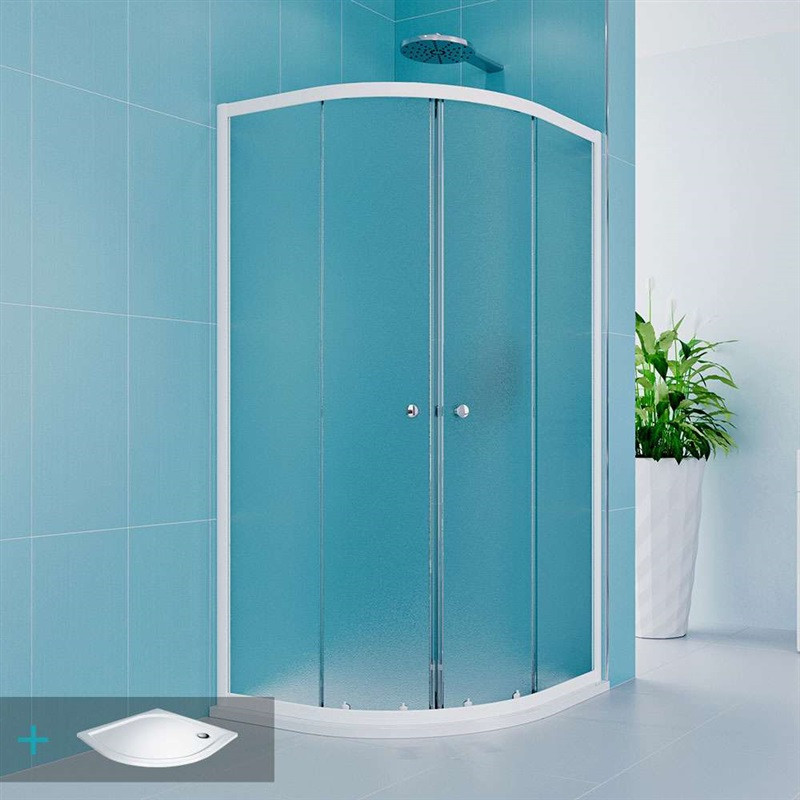 - Sprchový set z Kory Lite, štvrťkruh, 90 cm, biely ALU, sklo Grape a vaničky z liateho mramoru
