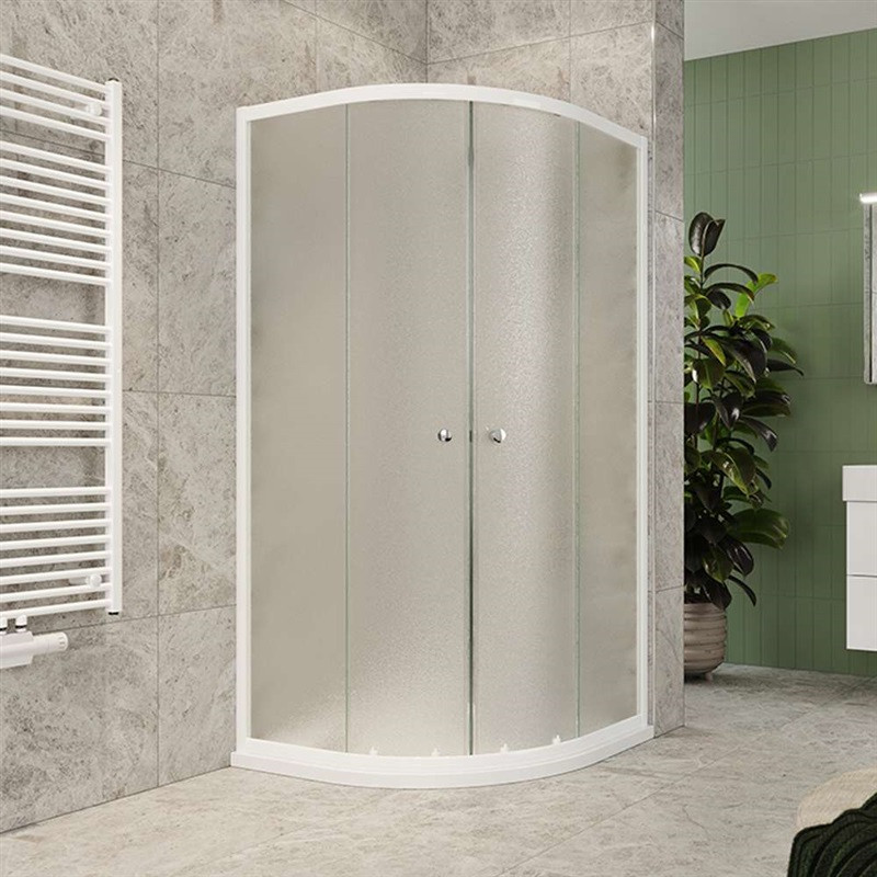 - Sprchový set z Kory Lite, štvrťkruh, 90 cm, biely ALU, sklo Grape a vysoké SMC vaničky