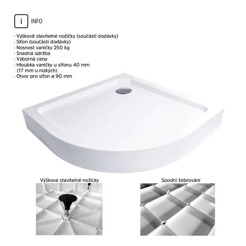 - Sprchový set z Kory Lite, štvrťkruh, 90 cm, chróm ALU, sklo Číre a vysoké SMC vaničky