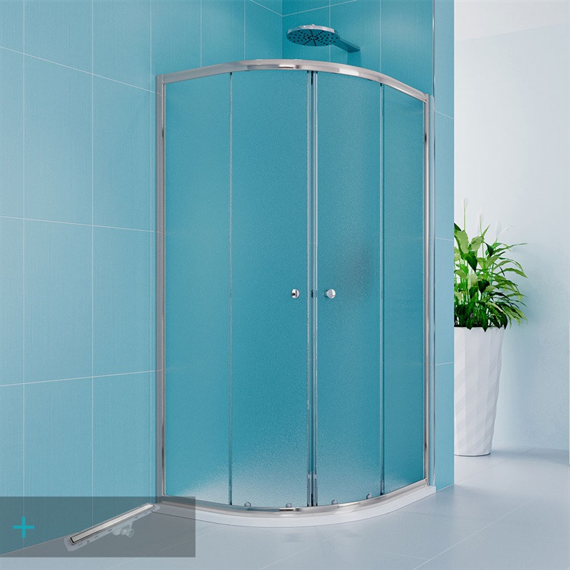 Set štvrťkruhového sprchovacieho kúta 900 x 900 mm, výšky 1850 mm, hrúbky skla 4 mm a odtokového žľabu CZ12P, vr. roštu a sifónu.