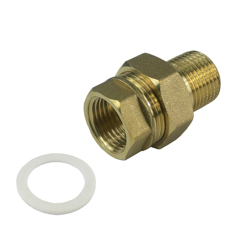 Kvalitné mosadzné prevedenie radiátorového šróbenie s prevlečnou maticou a plochým tesnením slúžia na spájanie závitových rúr a armatúr v teplovodných vykurovacích