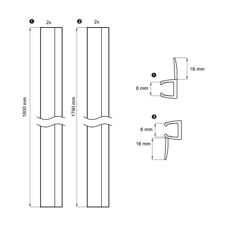 - Súprava tesnení pre zasun. dvere dvojdielne CK804xxK-2 ks tes. s mag., 1 ks na p.díl, 1 ks na dvere