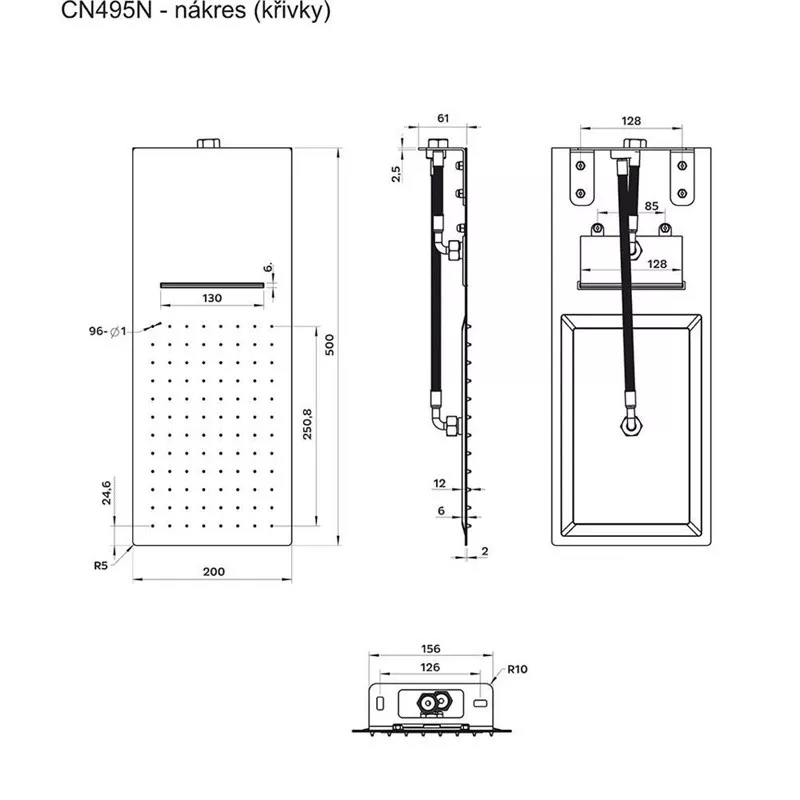 - Tanierová sprcha horná, s vodopádom, hranatá 500x200 mm, nerez