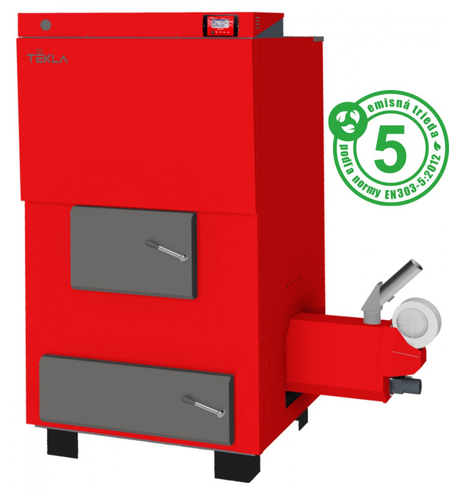 TEKLA, oceľový jednoohniskový kotol s automatickým horákom na pelety DRACO BIO 100 kW, s automatickým horákom na pelety, regulátorom Estyma Ingeo Touch, s plne automatickou prevádzkou.