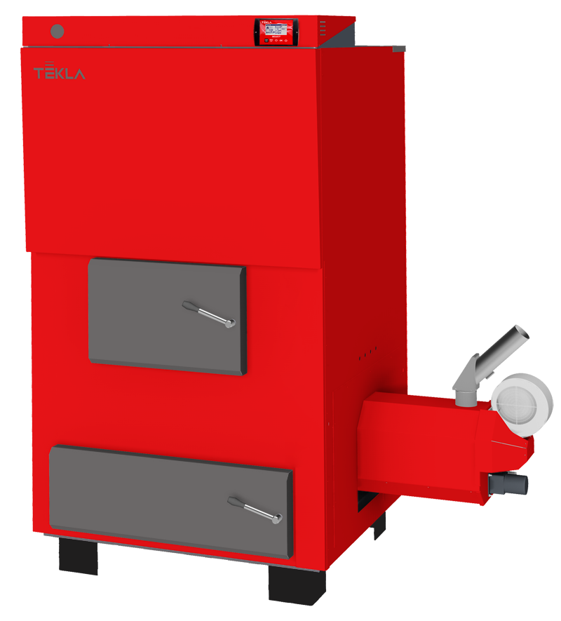 TEKLA, oceľový jednoohniskový kotol s automatickým horákom na pelety DRACO BIO 150 kW, s automatickým horákom na pelety, regulátorom Estyma Ingeo Touch, s plne automatickou prevádzkou.