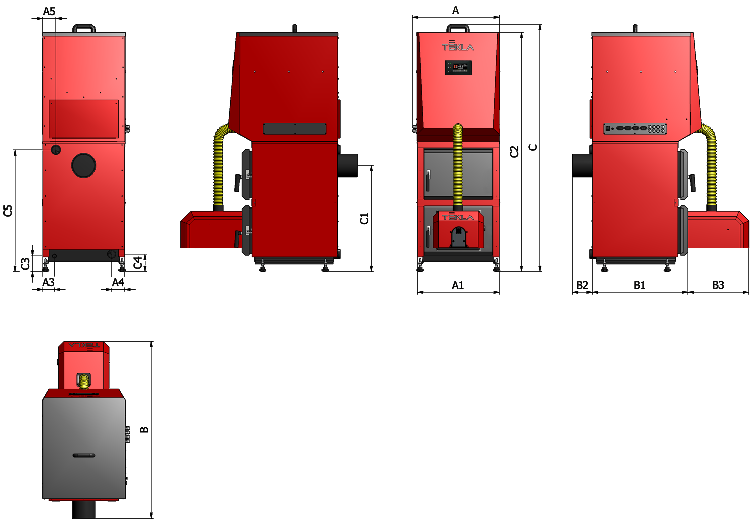 *Výšku kotla je možné regulovať pomocou priložených nožičiek.