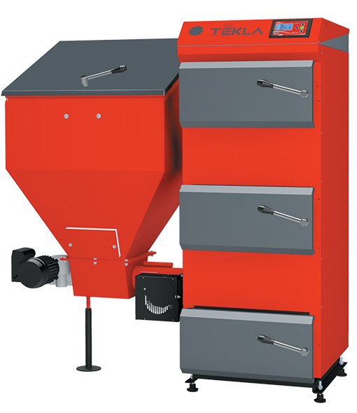 TEKLA, oceľový jednoohniskový kotol DRACO D 15, so šnekovým podávačom paliva a horákom na hnedé uhlie a eko-hrášok, s plne automatickou prevádzkou.