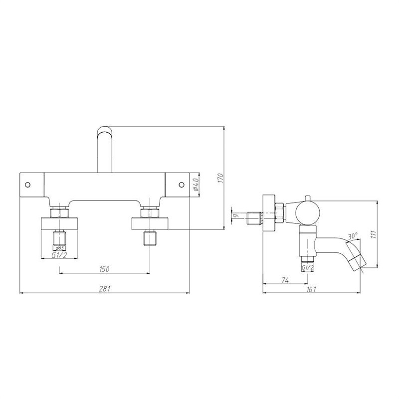- Termostatická nástenná vanová batéria bez príslušenstva