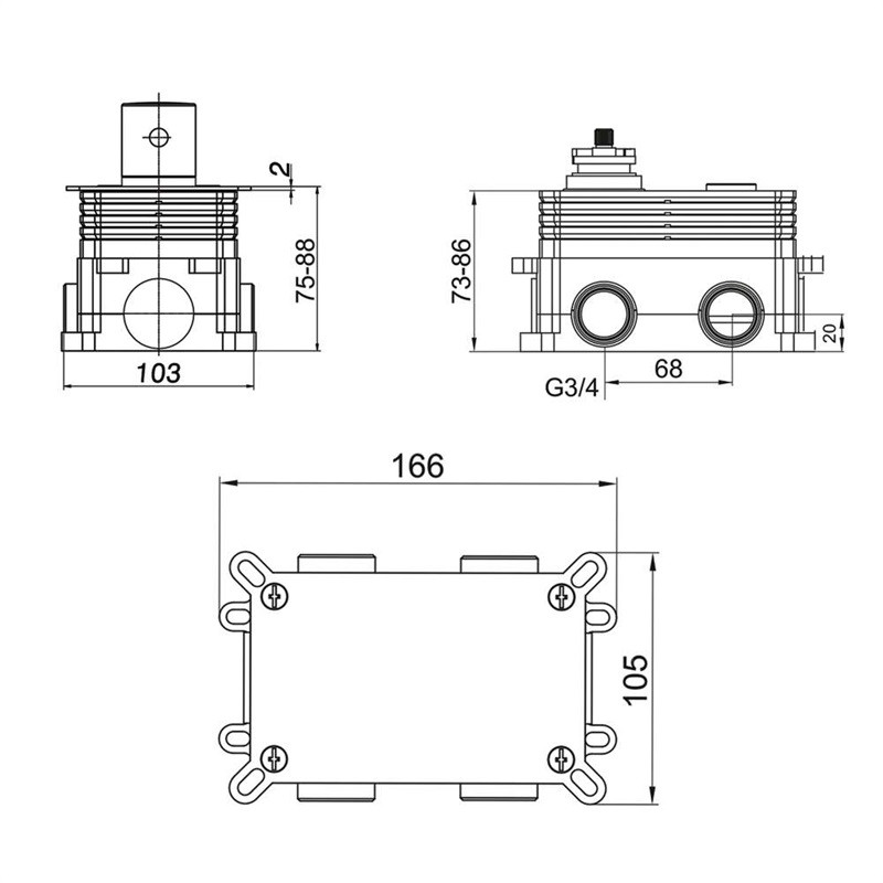 Termostatická podomietková tlačidlová batéria - 2-cestná - bez krytu