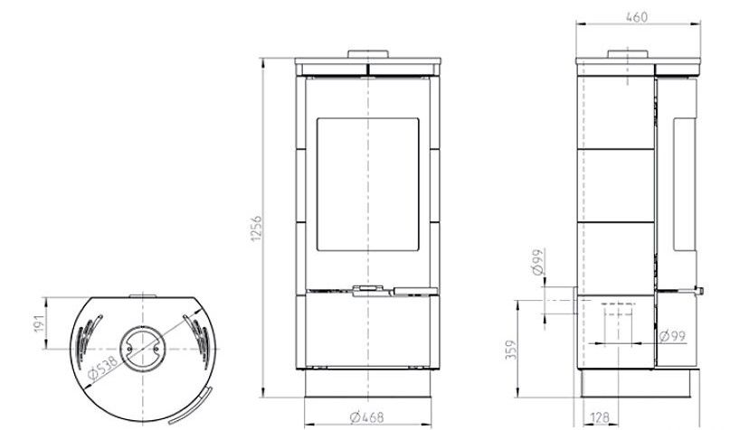 - s možnosťou dokúpenia bočných akumlačných kameňov (4ks), ktoré najprv akumlujú teplo pri spaľovaní paliva a potom ho odovzdajú do miestnosti. Teplo z akumlačných kameňov sála približne 6-8 hodín po vyhasnutí ohňa.