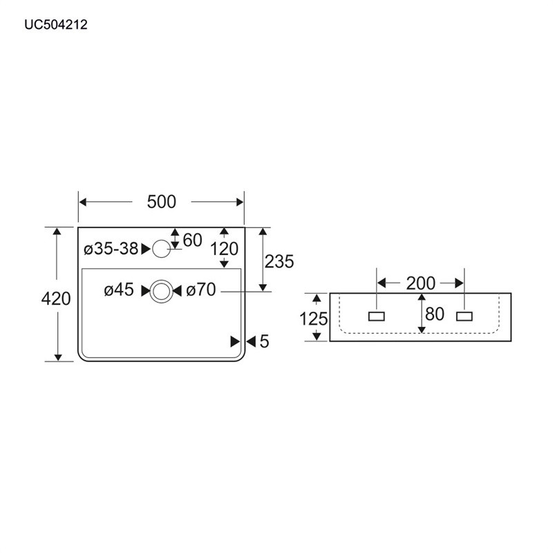 Umývadlo na dosku aj zavesenie s prepadom, 500x420x120 mm, keramické