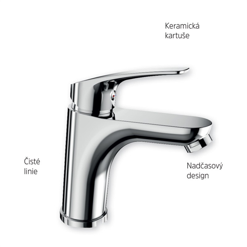 - Umývadlová stojanková batéria, Eve, s výpusťou, chróm