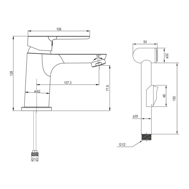 - Umývadlová stojanková batéria Zuna s bidetovou sprchou