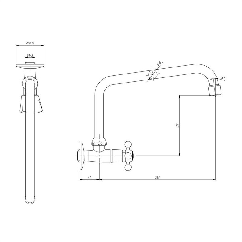 - Umývadlový kohútik nástenný, Kasia, s ramienkom otočným o 18 mm - 200 mm, chróm