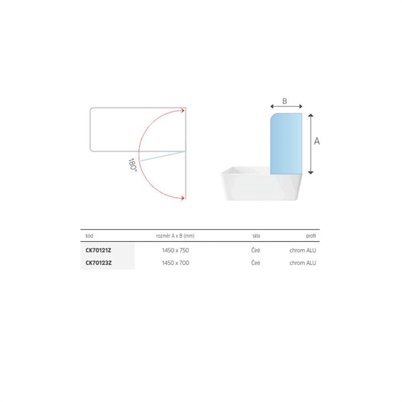 Profil vaňové zásteny je z hliníkového profilu, vo farebné úprave leštený hliník. Ako výplň je dodávané 6 mm silné bezpečnostné sklo, v dizajnu Číre. Je tu možnosť nastavení predvolené polohy. Stieracia lišta zamedzuje úniku vody.