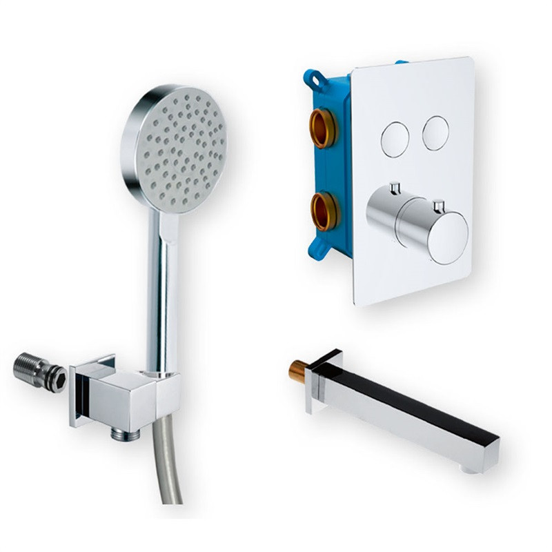 Vaňový set s termostatickou podomietkovú tlačidlovú batériou - 2-cestná - hranatý kryt